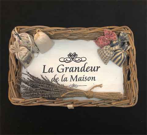- decoratief met een boeket gedroogde bloemen en / of linnen geurzakjes (gedroogde potpourri)