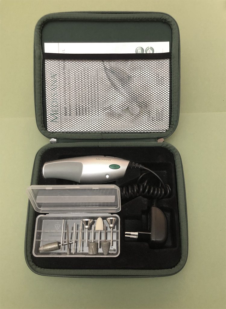 - geschikt voor behandeling van ingegroeide, dikke en verkalkte nagels en voor de behandeling van eelt, eeltknobbels, likdoorns